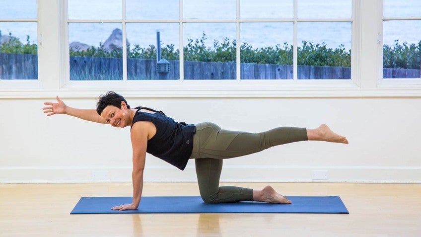 Reeser teaches workshops for Pilates instructors about the cervical spine, and has created a Pilates Mat-inspired workout to teach proper neck mechanics. It’s equally valuable for yogis. Too often, when we move our heads during familiar exercises like an ab curl or Cobra pose, we glide the head forward instead of leading from the crown.