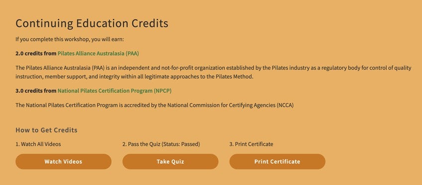 Once you pass the quiz, you will be able to download and print your CEC certificate. (You can take it as many times as needed.) Make sure you are downloading the quiz for the correct organization as they will not accept the certificate from the other organization. The link will be clearly marked so you know which one to select.