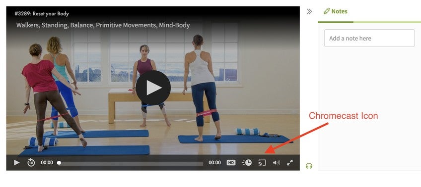 Pilates Anytime is compatible with Google Chromecast for streaming on Android, macOS, or Windows devices using the Chrome browser. If you use an iPhone, you may use AirPlay with Apple TV or an AirPlay-compatible smart TV.
