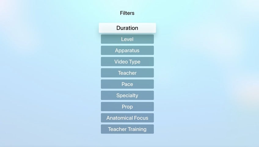 You can use these filters to search by Apparatus, Teacher, Pace, Teacher Training, Specialty, Prop, Video Type, and more.