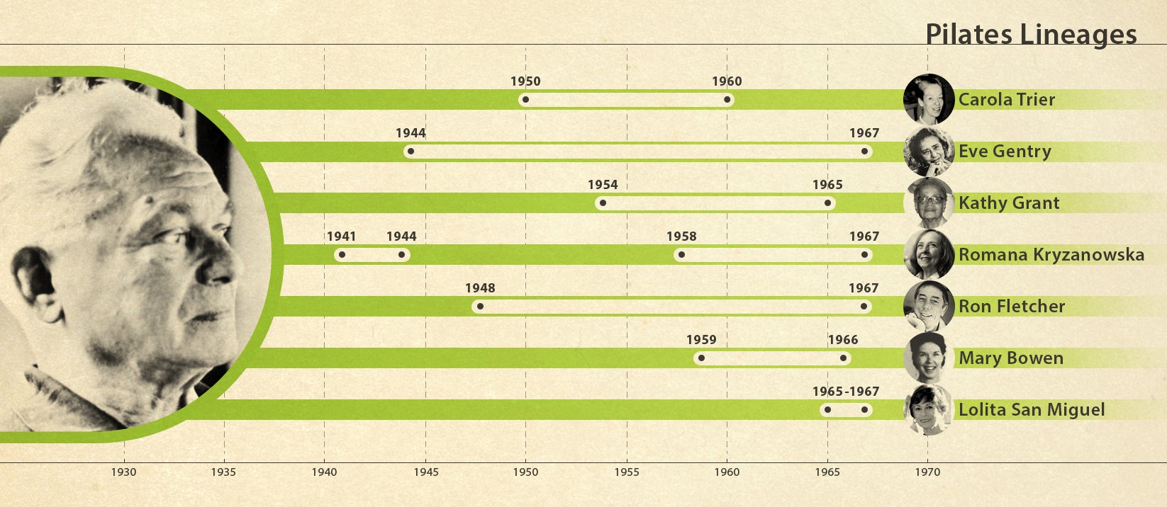 Each lineage represents a first generation teacher who worked directly with Joseph Pilates in his New York studio and continued teaching the Pilates method throughout the rest of their careers. To learn more about each of the elders, click on the Lineages tab above.
