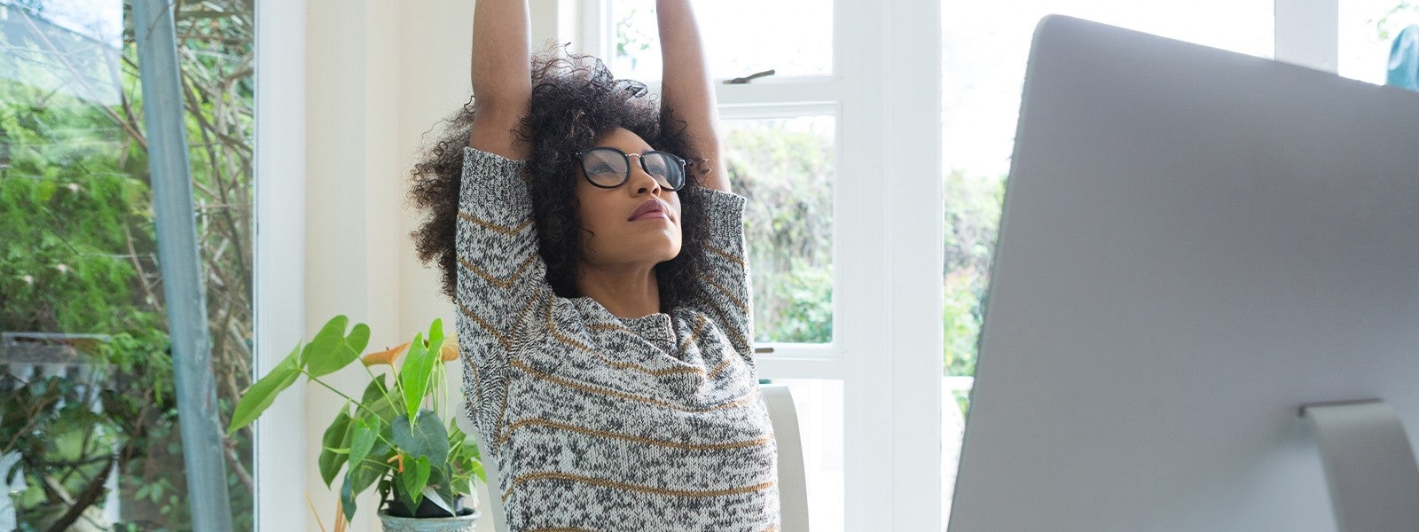If you’re slumped in your chair, your breath is restricted. Taking a moment to get up and move away from your desk or even simply sitting up tall in your chair and focusing on your breath is a great way to connect to the body and regulate the nervous system.