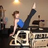 And you inhale to prepare, exhale, press the carriage out (breathes out), and down, and again, out and down. Full extension here, but watch the hyperextension of the knees. Good, and six more, six, connect the breath into the body, five, and four, and three, good, two, just letting those legs start to wake up here, and one. Come down to the stopper, slide onto the balls of the feet. Now, keep the heels not in a super high heel, and also not down towards the springs.
