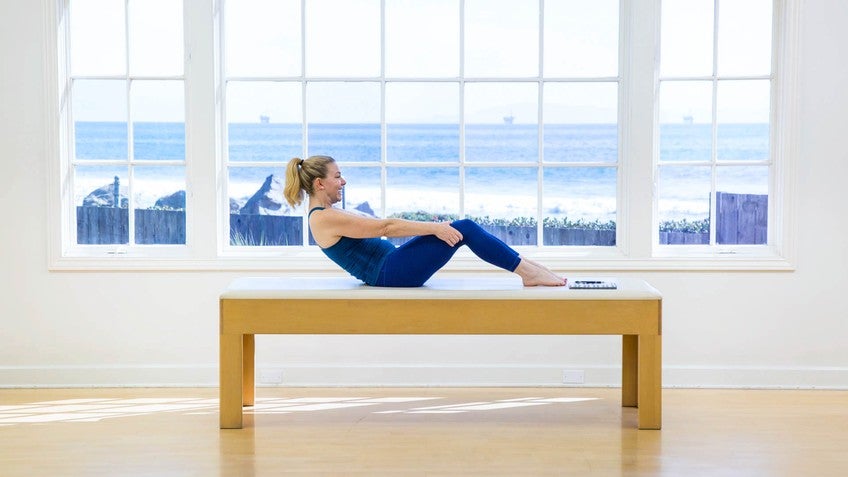 If this does not feel easy, write it down. All right? Hopefully it feels okay. But some of you, this might not feel easy. It'll feel easier as you do your pull audience practice. So here we go. First part to move, it's your pelvis and I want you to think of rolling your hips and your whole pelvis back away from your legs. You're going to roll kind of over your, your bottom and into your low back region until your arms are street.