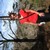 Deep squat slide, pull using the core. Down, slide in, one more. Lower, press, pull and lift. Last time. Now stay low.