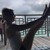 And then I go roll back and come up, hold. And again, rock to the back, rock up to the balance position. And again, rock back and up to balance. Last one, you go rock and up to balance. Now let's climb down the leg.