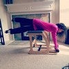 You go up and press and kick and pull and up and pull. Now something more, press down. Join with the bottom leg. Feel that midline again. And two more, kick, press, join.