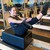Three more times. Arms up, legs extend, reach forward. How are you doing? Good. And lower yourself back so lowly, pushing that weight into the ball.