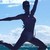 You're gonna place the ball between the ankles or right above the ankle, I should say. Toes pointing forward. And you wanna hold onto the ball firmly but you don't wanna squeeze to tight that you feel like your knees are calling in medial. So, otherwise you're gonna step for a little bit further away from you so you can reach those arms up and we don't hit arms. So, go out and reach those arms up towards the ceiling and then exhale.