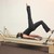 So from here, the left one is gonna go forward between the hands. So, you're in a lunge position. So, think about this exercise as being a similar to the lunges on the reformer with the moving carriage behind you. So, left foot forward, upper body up, find balance. Left hand's gonna go onto your shin, right arm is gonna come up towards the ceiling and you're gonna stretch holding here for two breaths.