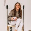 So we wanna actually keep the legs at about hip distance apart. Hands are gonna be on your shins. You're gonna scoop those abdominals in. You're gonna roll yourself back to your shoulder blades and then roll yourself up and balance here at the top of your rolling like a ball, leading with your lower back, inhale breath and then exhale and hold two more times, Gia inhale (inhales) and exhale. (exhales) One more time is you roll back and up, and pause, and you can rest your feet for just a moment.