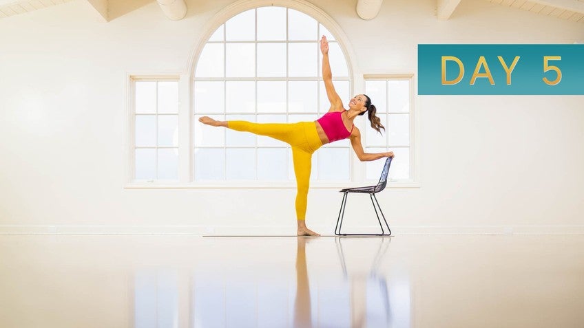 Welcome back. It is day five. You have almost completed this challenge. Stay with me one more class. You're gonna notice in today's class, we're using a chair.