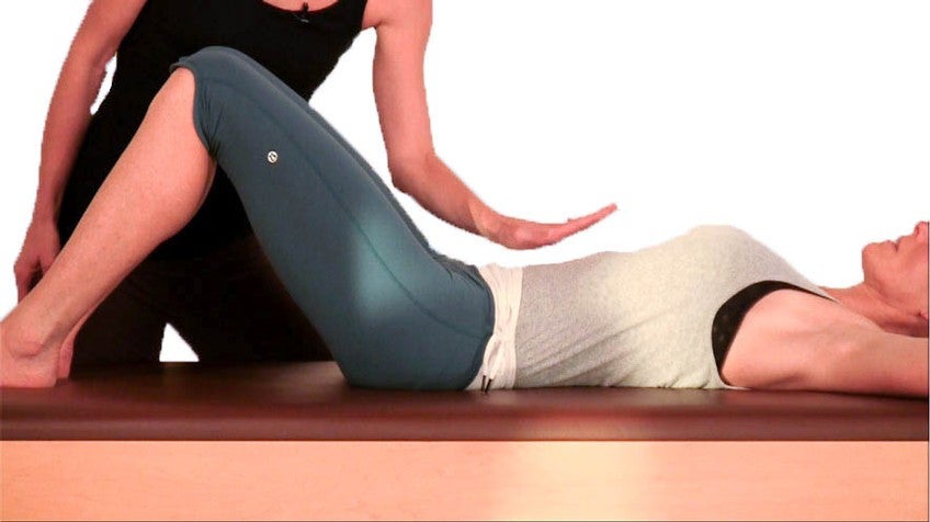 Flat back is a position in which all of the bones of the spine are on the mat. So from a lack, a relaxed position, one would pull the abdominals downward and upward to, to get a sense of no space between the bones of the spine and the mat underneath them so that we couldn't put any light through or any tangible, solid through at all.