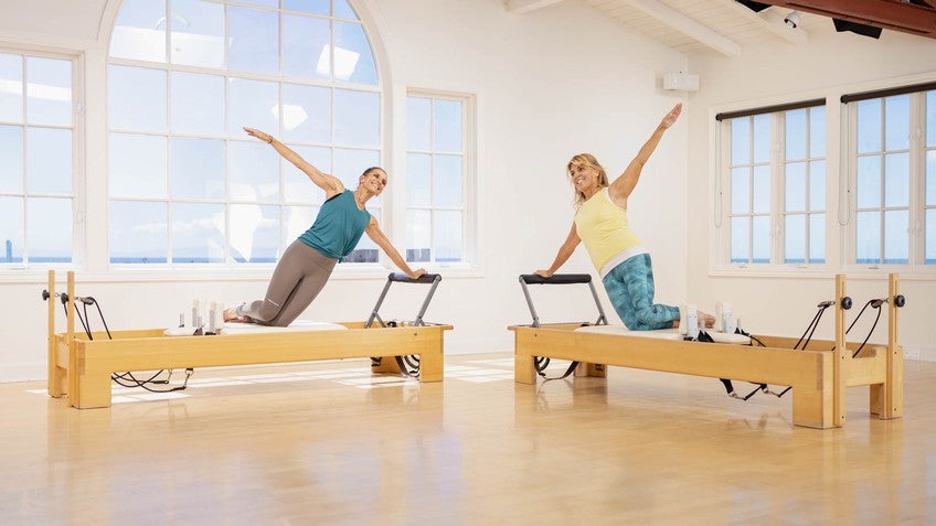 Make sure one side of the pelvis isn't heavier than the other, but instead they're equally weighted on the carriage. We'll do three more here. So get that full stretch, pull beyond the where the springs pull. Those springs will pull a bit, but try and go further. And one.