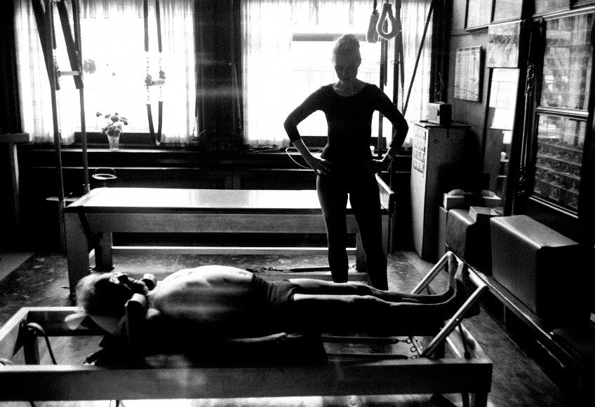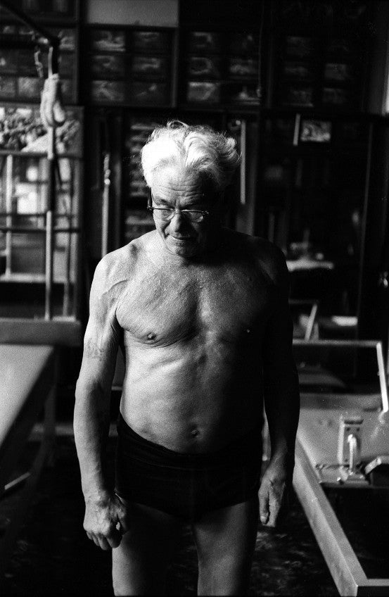 What’s remarkable about this image is that Pilates teachers and enthusiasts alike would know exactly who this man is without reading the article. In 1961, I.C. Rapoport** photographed Mr. Pilates working with clients at his Eighth Avenue studio in the heart of Manhattan. At the time, Mr. Pilates was nearly eighty years old, active as ever, and proud of his shape.