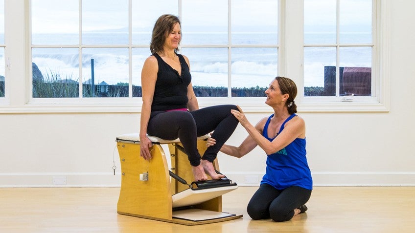 Non-weight bearing exercises such as Leg Springs on the Cadillac or Footwork on the Reformer encourage flexion and allow the hip to sit in the socket in a balanced manner.