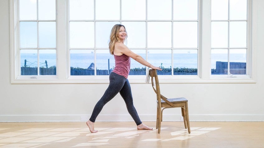 Hi, my name is Amy Havens here with Pilates Anytime. I'm about to teach the fourth class of my four class series, Pilates class series. This class is titled "Get Hip to Functional Movement." So of course it's a little bit about hip mobility and strength. I'll talk about muscles associated, joints, all the good things that lead to a good hip and functional movement. All you're gonna need is a sitting chair and again, a hand towel.