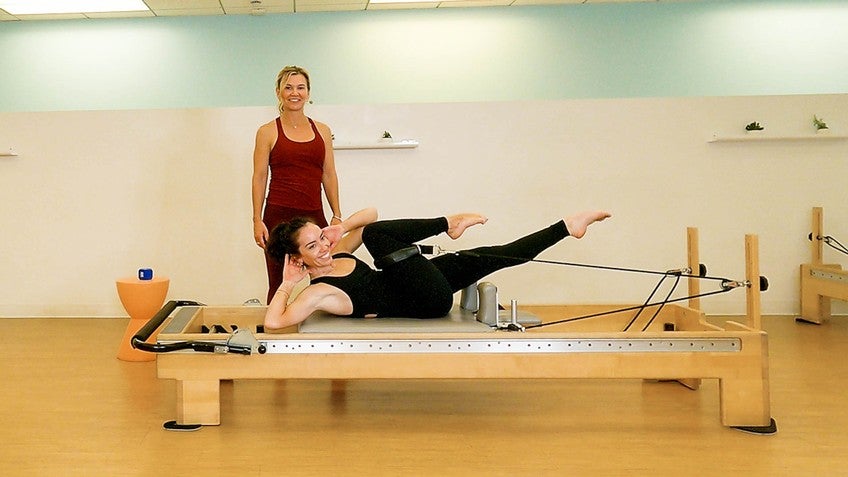 Find a balance between control and speed with this Reformer workout by Maria Leone. She teaches a high-intensity interval Pilates class focusing on the abdominals and arms using 30-second intervals of movements with 10-second breaks. She encourages you to work at your own pace as she gives an overview of each exercise instead of cueing beat by beat.