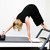 And the other arm goes up and it comes down. Move your two hands to one side of the frame. Tuck the tailbone under. Begin driving that carriage in. Think of pulling that knee to opposite shoulder.