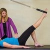 (Courtney exhales) Because I'm up in this flexed position, I can see what's happening in my abdominals, and I can see what's happening with my pelvis. I can make necessary corrections. (Courtney exhales) Just the legs. Inhale up, push down on the band. Inhale up, push down on the band.