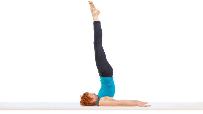 Movement: Extend both legs to the ceiling, draw the abdominals to spine, and roll over through the spine to take both legs almost parallel to the floor. While maintaining the lift of the pelvis and tailbone to the ceiling, reach both legs straight to the ceiling. Keeping the feet over hips as much as possible, articulate through the spine to roll down to the Mat, returning the legs to start position. Repeat.