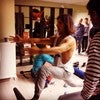 The outer quads aren't going to work so much. So I want Amy to imagine that her leg is on a, like a track, a railway track or some sort of tracking. So the heel, the knee and the hip joint is on the same line. So what she does, she's not going to bend her knee. She's just going to relax the knees. So it's off the track.