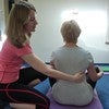 Now we're going to think of just this area here of the quadriceps. Now what I want Emily to do is to imagine there's a string on her toe here and she's just going to slowly lift the leg up. So it's initiating in the just above the knee.
