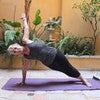 We don't want to drop into that space rather lift out of it, but not too much out of it that we're here. So it's kind of finding that little sweet spot. Right. And it's sometimes subtle where to go. Okay. So I would say for Nicole, lift a little more away from the mat a little more. And also maybe the thought for you would be this, I can get longer, more and more and more. Yes, hold that. Okay. Now this arm is going to come up by your head and we just stretch into our legs and we're up. Beautiful. And the arm can come over.