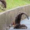 And we're gonna go into swan. So let's face each other, Nicole. And then you're gonna keep the circle with you. So you're gonna lie on your stomach. The circle is gonna go out in front of you.