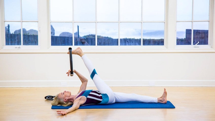 Welcome to Pilates Anytime. I'm Elizabeth Larkam, delighted to be back with you in now my seventh year, which is surely an indication that the practice of pilates makes you younger. We're filming in early January of 2018, and the Southern California fires, the Thomas fire, is just barely contained, so we'd like to send heartfelt wishes for well-being to all the people affected by the fires. Today's class uses the ring. It uses just one ring, but I wanted to point out to you that rings now come in different sizes, so if you feel more comfortable on some exercises with a smaller ring, by all means use it.