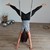 Come down from here now. If you note that you are winding your way headward onto the mat, it's nothing wrong with you, remember just blame the environment. It's just the fact that your ground forces through your feet are pressing you up towards your head and if you're going to stay center under your overhead mirror at home, you need to get with the program. Okay now, I'm putting one ring, putting the ring on the sole of the ball of your foot. Having your palms toward you.