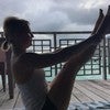 Knees can stay together or apart with a knee injury or replacement as she has. You do have to be careful here, inhaling and exhaling. All right. Do you have something else that feels. Oh it feels wonderful, it's just challenging, but that's what we're here for.