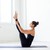 Good. But this time while you're ups, put it between your arches or the side of your foot is what I should say as your legs lengthen. So straight legs good right there. Pulling the foot back like so. Excellent. Now put your hands behind your head. Good. And pressing the circle. You want to really send it to that ocean. Okay. And you're going to pull those hip bones. Oh, that's good. Keep it going.