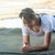 Exhale, the ribs bring you up. Inhale, now let this stretch you. Ah, nice. Good. Yes, one more please.
