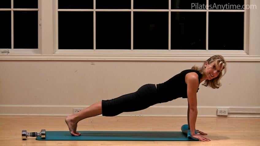 This little short demo is, um, some options for you if you have risks issues. Um, we get a lot of questions here at pilates anytime as to how can I do some of the weight bearing exercises if my wrists, um, can't accommodate the weight, um, or with osteoporosis or various other conditions that may be pertaining to you. So what I'm going to do is just show you some options that you may be able to just interject into any of our classes in hopes that you won't feel like you have to sit exercises out completely. Um, to begin, I'm just showing you some the easiest way to change things first rather than getting extra parts or props. Um, if you're in an exercise that requires you to be on the wrist and that's not gonna suit you, the first thing that comes to mind for me or if I've been on my wrist too long, is to just simply make a fist and straighten out that angle at the wrist. Uh, so there's not so much press pressure on those small bones. Um, of course you have to be able to accommodate that in your, your knuckles and that may or may not work for you. But that's, that's often you'll see me in my own classes. If I find that I've been on my arms too long or my wrist too long, I'll simply switch from there to there and it often feels like a much stronger position. So that's one option for you. Another one that wouldn't require too much moving around where you could stay with the flow of class is to take the mat you're using and roll it.