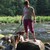 Swan prep. Lie down on your stomach. But first, set up your towel horizontally at the edge of your mat. Lie down with your arms extended in front of you. They're as wide as your shoulders or wider.