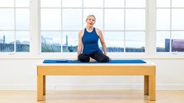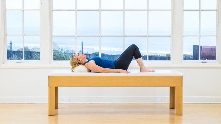 As a beginner in taking mat classes, you'll be hearing us say things like, sit up tall, sit up straight. And in the last modification video I talked about having a prop underneath your pelvis to help you sit up straight. Another area in your body that we want to talk about in, I'm gaining more efficiency and ease in sitting up straight as your head and your neck. So if you're a person that's new to as in, you're taking class in, you're not only struggling with how to sit, get that prop for your seat to sit, but it might be that your head is in front of your shoulders making that a little bit problematic and how to balance your body weight above your pelvis. Okay? So if you're that person and your head is a little bit forward, when you lie down on the mat, you're not comfortable. That's the number one thing we have to get you comfortable.