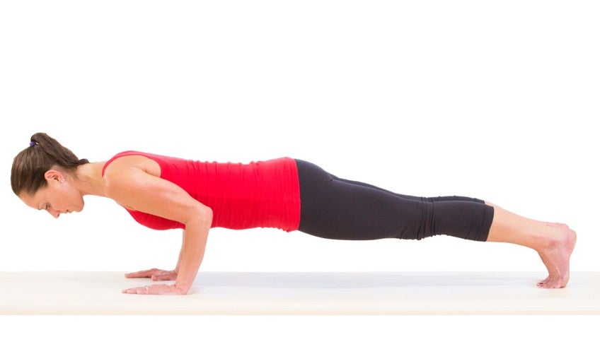 Now we're going to be doing the pushup exercise. It's an intermediate exercise and, and obviously it's going to be strengthening your upper body. It's going to be strengthening your triceps, your chest muscles, as well as your back and always using your powerhouse. So let's go ahead and begin. We're going to bring your head to your chest and roll off an imaginary wall.