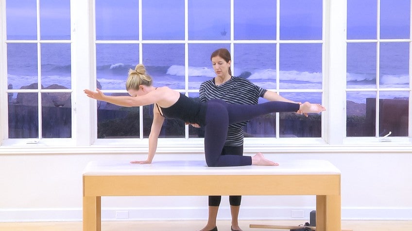 I'm a little curious about going around now, whereas before I feel like I couldn't go. Yeah, okay, all right. Now roll down. Now that we have Amy in the right alignment, what we wanna do is help her strengthen and stabilize that alignment. So I call this my pelvic stabilization routine.