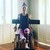 She sits back up trying to lead the leg nice and high. There's her inhale and start again. Exhale, pump three, two, one, maintaining as much as the long back there. As her inhale shoe starts to rock it back and exhales to walk down into the ball. You're rounding down into it, extend. Yup. Then curl the head up, walk up and you, you, you can use the arms but not a lot. Use the sense of your trunk, bringing you up.