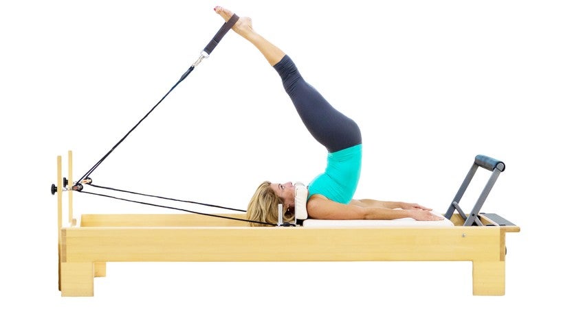 But today we're going to talk about how to make it feel a little better and hopefully try to understand some of the nuances of the exercise. First and foremost, we have to deal with safety. Anytime you're lifting your hips above your head, it's absolutely imperative that the headdress be flat to ease up any excess stress on the cervical spine or on the neck. So please make sure that your head rest is flat. Before you begin, I want you to know that I have Christiana Red Spring and a blue spring, which is a pretty light spring. Um, however you want to be careful not to go too light or too heavy here. If you're a bigger person, a longer person, or a heavier person, two red springs would be okay. For me, that's about the heaviest I would work.