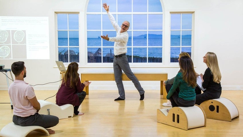 I just learned this in a workshop. Are you interested in my material? Can you tell me what you learned in the next workshop or the book that you're reading or whatever inspirations we have, and this is the current field. I only mentioned some examples here. People say I'm standing on the shoulders of the of them, but that is actually more like a ballgame. Helen large around one of the leading researchers now at Harvard Medical School, the school she is exchanging information risk color Stecco in part of our university risk, Tom Findlay with chocolate [inaudible] and many other names. And so this is an inspiring field and every year new information is coming out of that field, which will also influence this session on how we look at stretching.