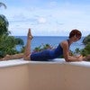 So obviously it's a rhythm exercise. You have to trust your body, you have to lock everything so you're not flopping around as you fall forward. Cause it is a fall. You have to think of the legs lifting you. So creates nice firm bottom, nice strong open chest. Things to watch out for is if the legs are disconnected or if you feel a pinch in the lower back. Not everybody has a long open, lower spine. In that case, you take the legs wider apart so that there's room for the sacred to be buried.