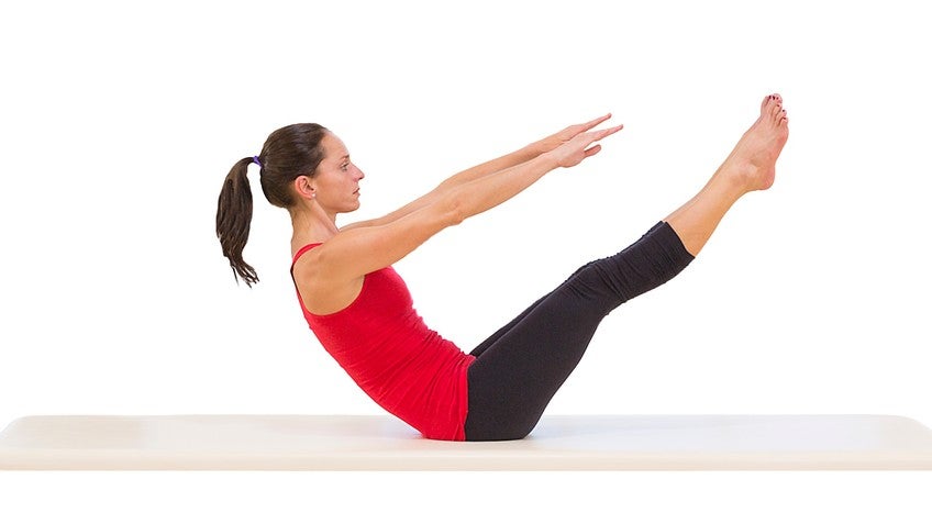 Here we have the Teaser. And it is an intermediate exercise, but kind of sums up all of Pilates. So it is about the end all Pilates exercise. It's going to be using your power house, for sure. But with soft, long, limbs, which is the most challenging thing.