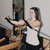 DJ is hanging onto her straps. Christie has her hands reaching through the straps. Two more please. Ladies. Inhale and exhale. And one more time. Inhale, hold it. Hold it. Pull your arms in closer to the side of your body. Lift your chest up in the air and release. Ah, put those ropes down.