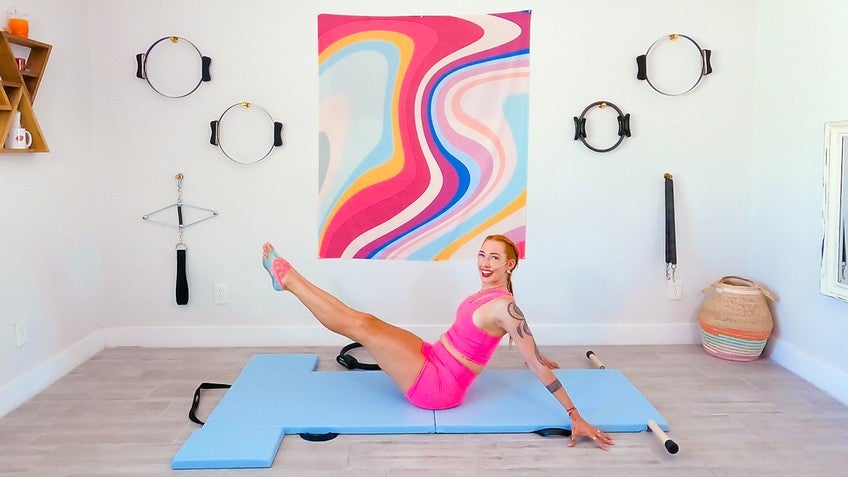 Hi, I'm Lesley Logan, and welcome to an advanced thass mat class with me. This class does move with a little bit of zest. You will need a magic circle. Feel free to skip any exercises that are not in your practice today, and repeat it with anything we've already done. If it goes a little fast for you, just repeat the one we're on, and join us on the next exercise, cool.