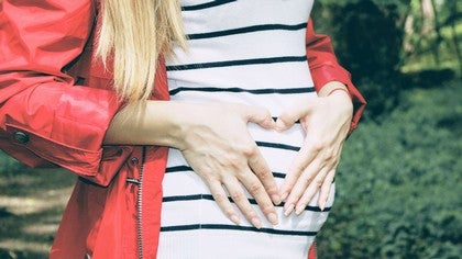 You made it to the homestretch! You’re likely feeling tired again and possibly more anxious, given that baby will be arriving soon. In your third trimester, grant yourself more permission to relax—and breathe deeply—in your workouts. Standing exercises are great, but opt for a wider, turned-out stance to accommodate your belly. In addition to the belly, most women find that their breasts are growing, too, which can lead to back pain. Add some chest and back stretching and strengthening to counteract your newfound body alignment. If you feel any pain in your belly button as you move, that could signal a hernia, so it’s best to see your doctor right away.