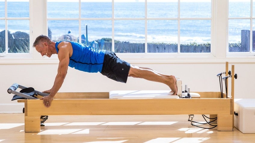 The first piece of equipment Joe invented, the Reformer, features an elevated bed-like frame, either made from metal or wood (or a mix), that houses a gliding, cushioned platform called a carriage; the carriage moves along rails by way of a pulley system. On one end, the carriage is attached to a set of springs that deliver resistance and can be customized to accommodate any fitness level.