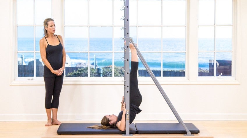 Although less common in more modern times, the Guillotine—which is a tower-like frame (either mounted to the ceiling or freestanding) over a mat—was a fixture in Joe’s studio back in the day. Its vertical nature makes it especially effective for clients looking to increase stability, flexibility and spinal/pelvic articulation.